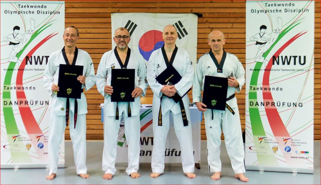 Nachdem die Bundesdanprüfung der Deutschen Taekwondo Union e.V. (DTU) in Altdorf bei Nürnberg im Dezember 2020 aufgrund der Corona-Pandemie abgesagt werden musste, plante die Nordrhein-Westfälische Taekwondo Union e.V. (NWTU) eine Bundesdanprüfung innerhalb des Landes am Standort Eschweiler. Nach drei Verschiebungen und einer Absage aufgrund des Lockdowns, konnte nun endlich am 05.06.2021 eine Bundesdanprüfung (4. - 8. Dan) stattfinden. Zuerst war diese als erste virtuelle Bundesdanprüfung geplant, doch in Münster bot sich eine Chance, die goldwert für alle war. In Münster war seit über drei Wochen der Inzidenzwert unter 35, sodass die präsente Ausrichtung kurzfristig nach Münster verlegt werden konnte. Hierzu gilt ein besonderer Dank an Abteilungsleiter Klaus Zumdick des ausrichtenden Vereins, DJK SV Mauritz e.V. - Taekwondo, der dies ermöglichte und gute Vorarbeit leistete.