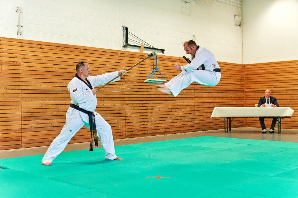 Nach einem umfangreichen Prüfungsprogramm, welches aus insgesamt 7 Disziplinen besteht (Theorie, Grundschule, Formenlauf, Einschrittkampf, Wettkampf mit Aufgabenstellungen, Selbstverteidigung und Bruchteste), konnten sich alle Prüfungsteilnehmer/innen nach einer vierstündigen Prüfung über ihre neue Dangraduierung freuen. Es erlangten acht Prüfungsteilnehmer/innen den 1. Dan, drei den 2. Dan und zwei den 3. Dan. Als Prüfungsbester wählte das Prüfungsgremium Lukas Theißinger mit seiner bravourösen Leistung zum 2. Dan. Einen Sonderapplaus gab es für den mit 72 Jahren ältesten Teilnehmer, Peter Teitscheid, des VfL Berghausen - Taekwondo, der nach verlängerter Corona-bedingter Wartezeit, mit beachtlicher Leistung im Alter seinen 1. Dan bestand.